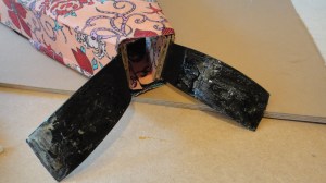 I want a weight that sits hidden inside the V of the table. I have made a card prototype, I could make it from faric, but am worried it will become misshapen when filled with …. er something heavy?! …but small.